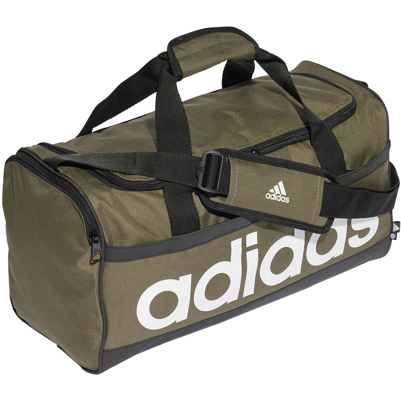 Praktyczna torba sportowa adidas pozwoli na uporządkowane przechowywanie podręcznego bagażu i stroju na trening. Wytrzymała tkanina o płóciennym splocie, to pochodzący z recyklingu poliester. Pojemna komora główna zyskała dwukierunkowy zamek. Wewnętrzna przegroda na buty lub brudne rzeczy. Wewnętrzna, wisząca kieszeń. Boczna kieszeń na zamek i siateczkowa przegroda. Wygodne uchwyty z plecionego materiału zaopatrzone w miękką patkę. Długi pasek na ramię z opcją regulacji. Wzmocniony dół.